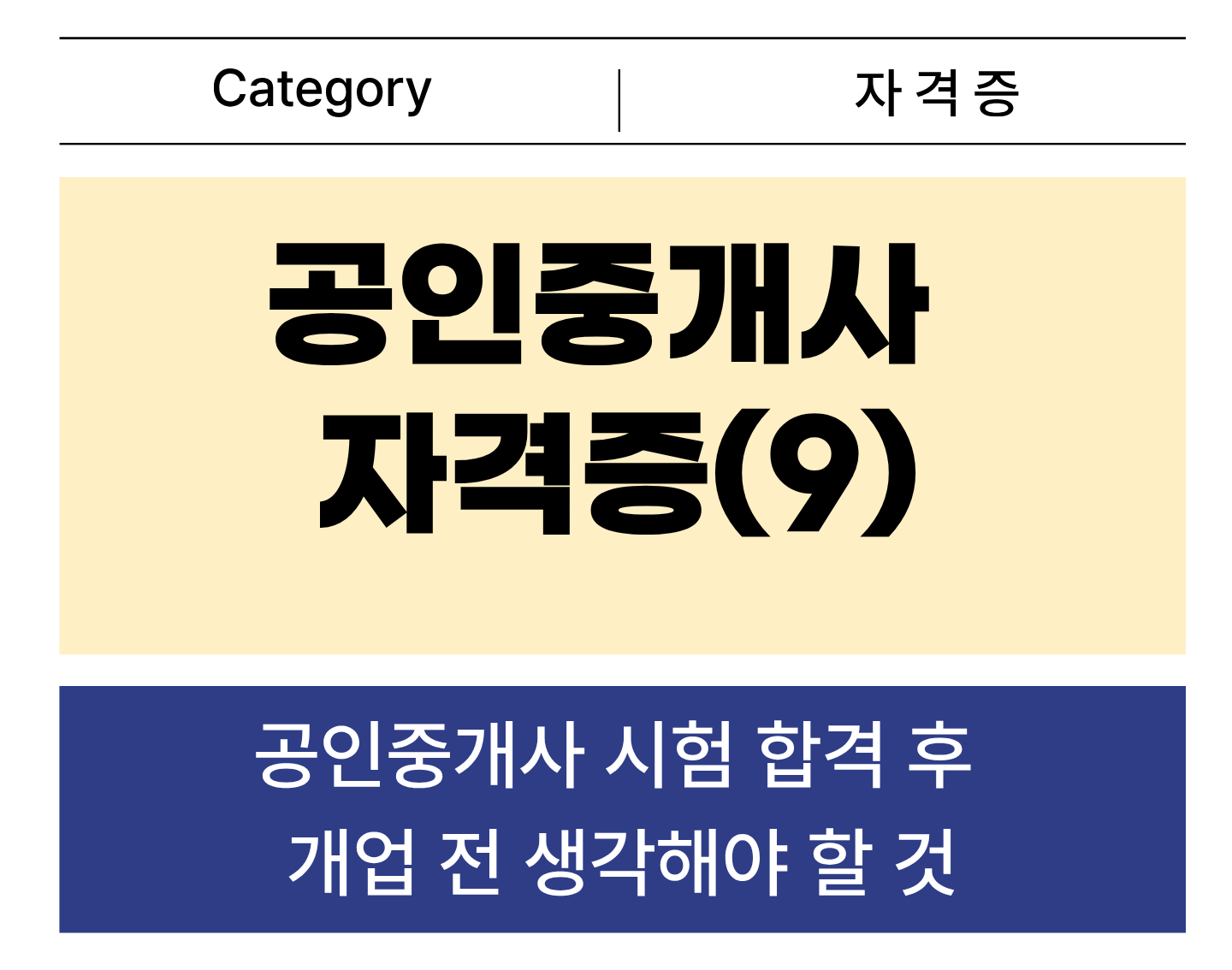 물론, 합격하신 분들 중 또 많은 분들은, 장래를 위해 자격증을 취득했을 뿐, 아직 구체적으로 공인중개사 업무를 시작할 계획은 세우지는 않으셨을 것입니다. 사실, 저도 여기에 포함되지만, 곧 바로 현업에 뛰어드실 분들을 생각하여, 실무에서 부딪힐 문제들을 조사하여 정리해보았습니다. 아직 계획하지 않으신 분들도 참고가 되실 수 있으리라 생각합니다.