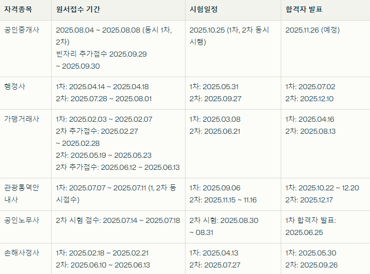 각 자격증 시험의 2025년도 일정