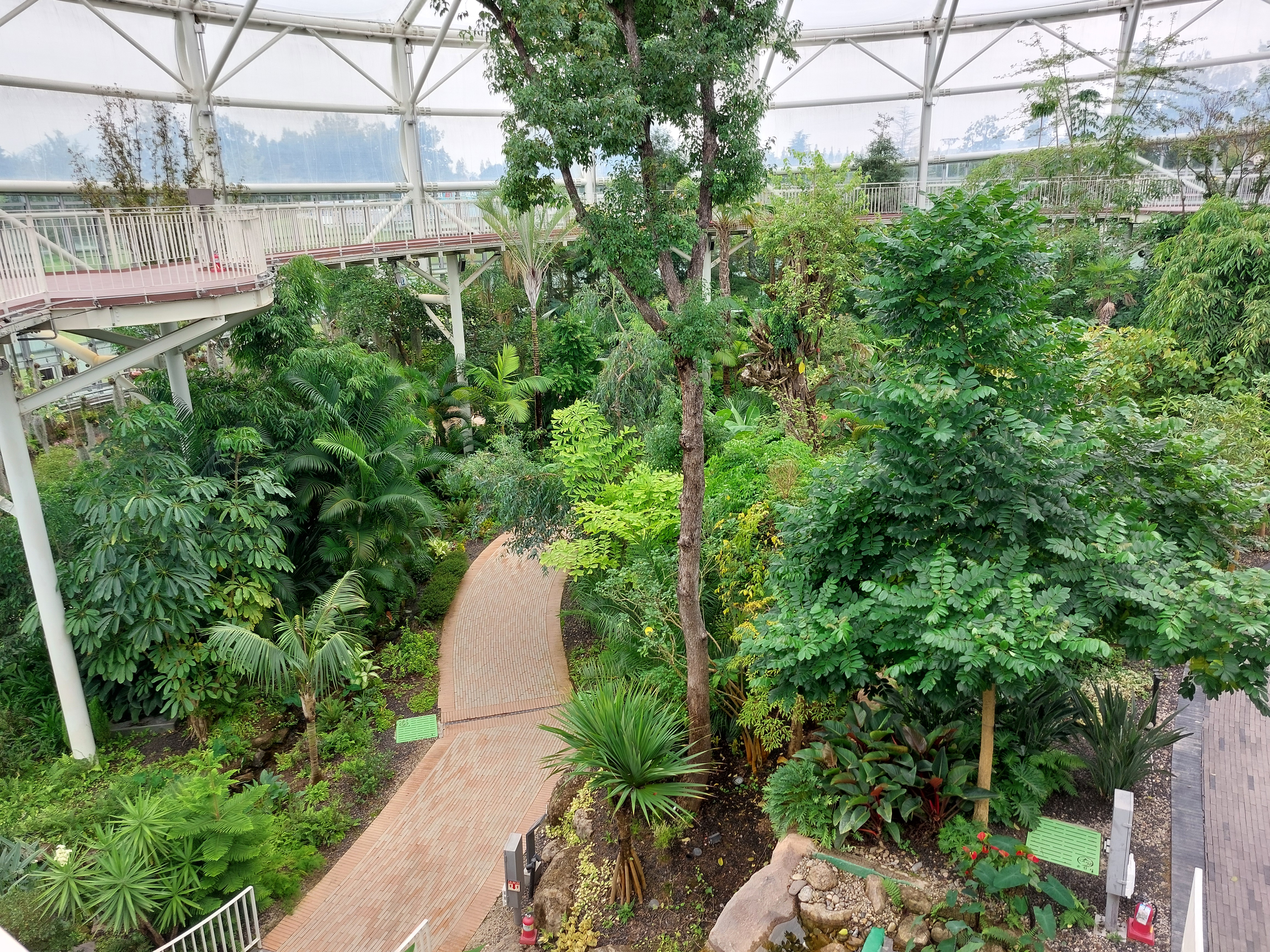 또한, 입구에서 왼쪽으로 길을 따라가다 보면 식물원이 있는데, 그리 크지는 않지만 안에 작은 폭포도 있고 꽤 예쁘게 관리되고 있었습니다. 아내의 말로는 싱가폴의 식물원을 벤치마킹한 느낌이라고 합니다. 단순히 평지에서 보는 것이 아니라 계단을 올라가 2층으로 된 다리를 걸으면서 밑에서 보던 키 큰 나무들을 위에서 볼 수 있도록 해놓은 것이 특이하였습니다.