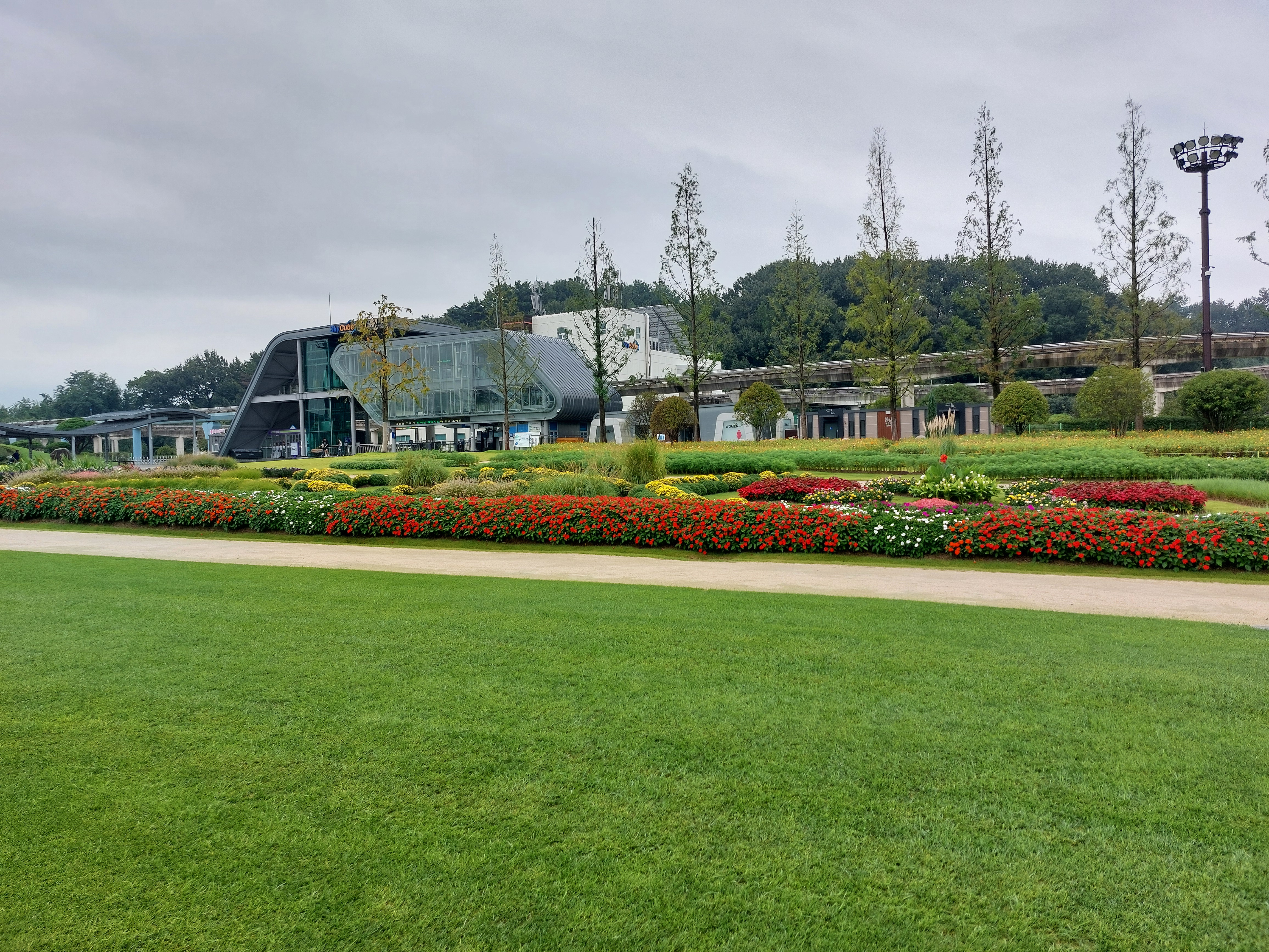 그런데 서문 쪽도 상당히 괜찮습니다. 동문 쪽 정원이 세계 각 국의 정원으로 다양성이 강조되었다면 서문 쪽은 넓은 광장에 펼쳐진 길다란 정원의 모습이 인상적이었습니다. 또 동문의 동산 밑에 있는 호수와 달리 가까이서 보는 호수와 꽃들은 또 다른 느낌을 주었고, 조용히 가족 또는 연인과 산책하기에 좋을 것 같다는 생각이 들었습니다.