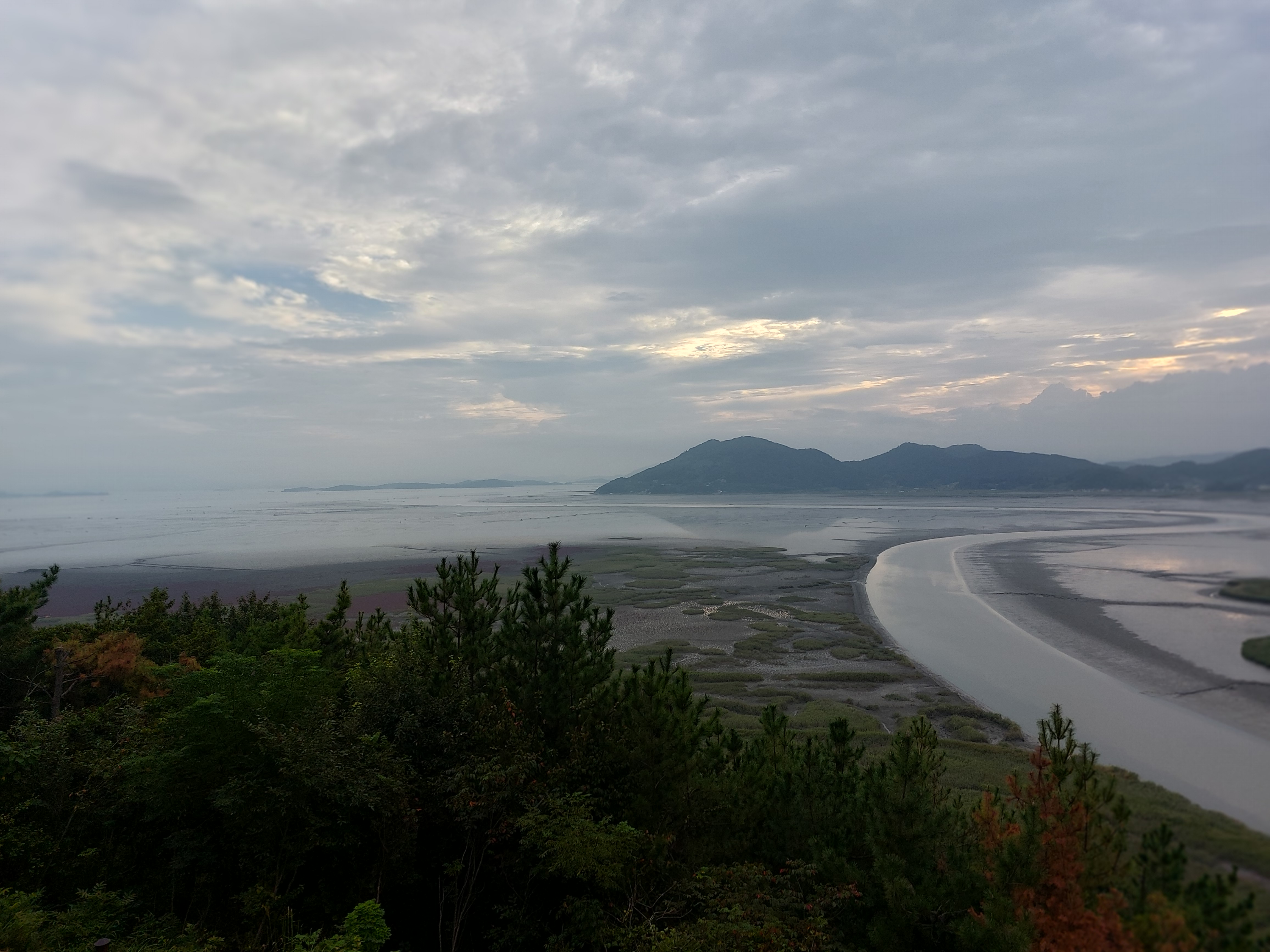 늘 '산'이라는 것은 '보는 것'이지 '오르는 것'이 아니라는 신념을 갖고 살았는데, 그 신념이 무참히 깨지고 말았습니다. 정말 오랜만에 산에 오르기는 했지만, 산이라는 것이 아무리 높더라도 산행길에는 오르막도 있고 내리막도 있는 줄 알았는데, 용산전망대 가는 길은 오르막만 있었습니다. 즉, 강약이 조화를 이루지 못하고 '강강강'으로만 이루어진 산행길이었습니다. 그나마 그리 높지는 않아서 20분 정도에 정상까지 갈 수 있었습니다. 어쨌든 그러한 노고(?) 덕분에 정상의 전망대에서 순천만에 펼쳐진 바다의 모습에 감동할 수 있었습니다.