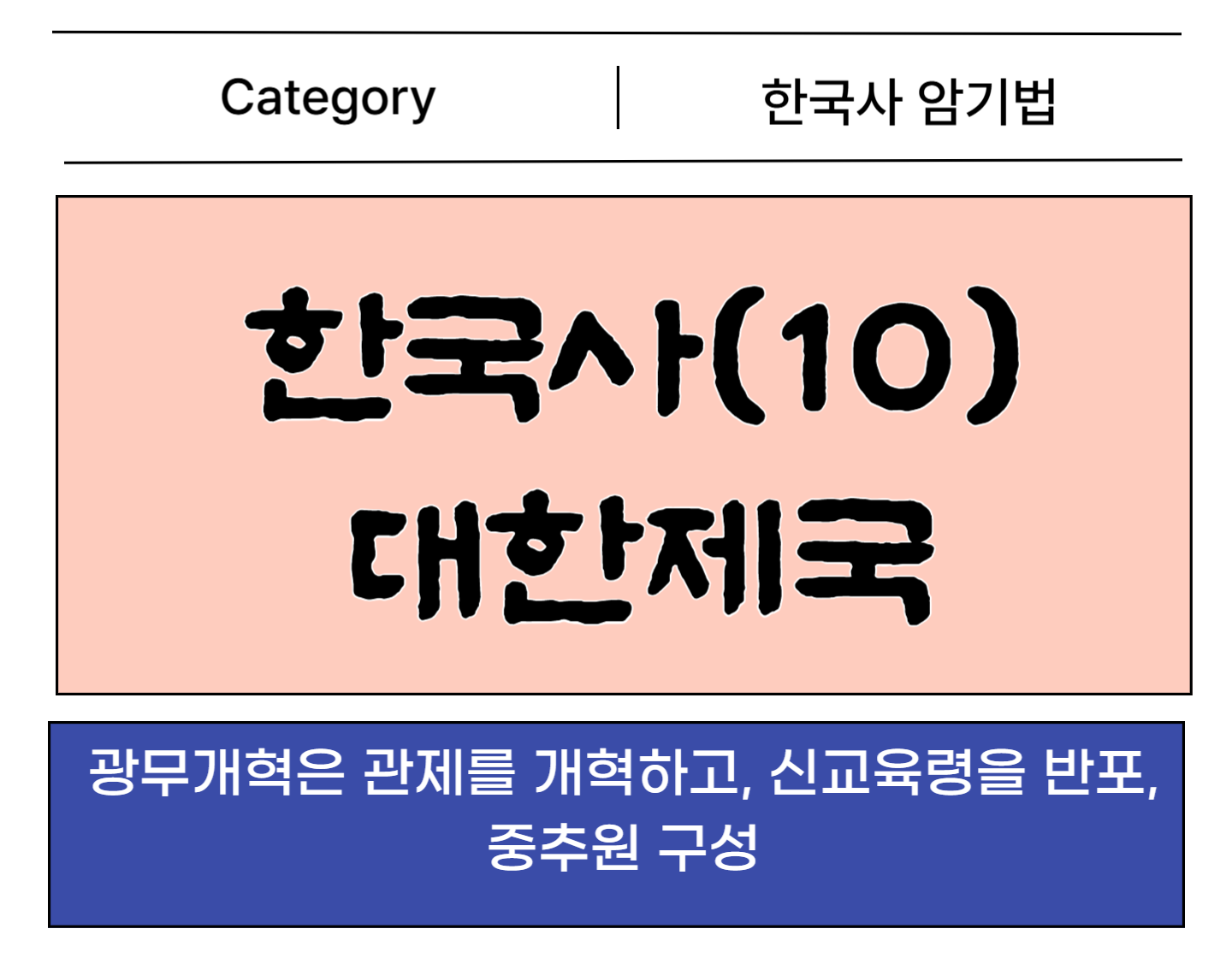 한국사 정리의 끝이 보입니다. 이번 편부터는, 시험에는 자주 나오지만 잘 안 외워지는 근대 이후의 한국사로 그중 오늘은 대한제국 편입니다.
