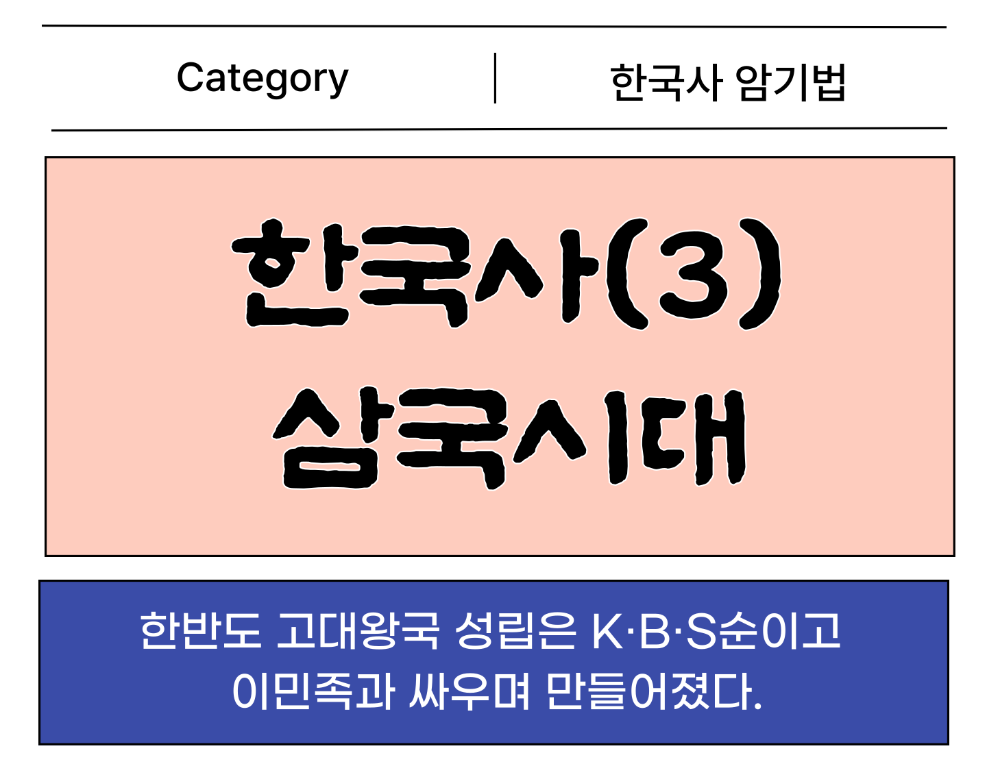 이 문장이 중요한 이유가, 이태고 삼동을 사 미소 전하니 오광정이 생겼더라, 삼고사초하니 오문동에 여섯 나무가 무성하더라, 사내오눌할 일이 여섯 가지 법진진. 이렇게 세 문장을 외웠는데, 이게 어느 나라인지 헷갈릴 수가 있습니다. 그런데 KBS 순이니까, 2세기 태조왕은 첫 번째인 고구려, 3세기 고이왕은 두 번째인 백제, 4세기 내물왕은 마지막인 신라 순이라고 외우면 잊어버리지 않습니다.