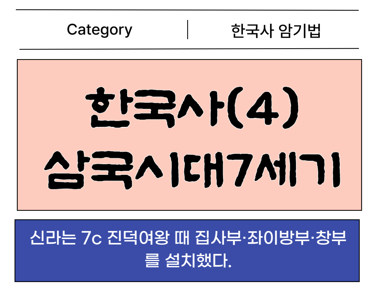 이는 신라의 중앙집권적 행정 체제를 강화하고 국가 운영의 효율성을 높이기 위한 조치로 볼 수 있습니다. 저는 위와 같이 외웠지만, 찾아보니 창부는 무열왕 때 설치되었다고 합니다.